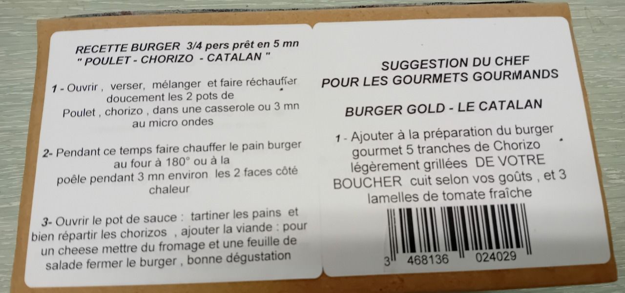 Pack Garniture Burger Poulet Chorizo pour 4 personnes. 2 pots de viande poulet chorizo douce, 1 pot de sauce maison stérilisée. Parfait pour des burgers savoureux, rapides et gourmands, idéaux pour des repas conviviaux en famille ou entre amis.